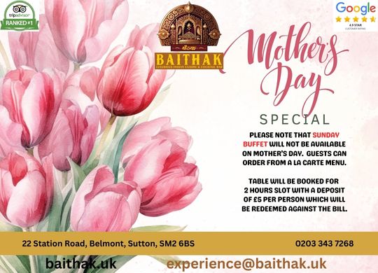 Who brings almost 30 years of experience in the hospitality world, built on a passion for Indian cuisine and heartfelt service. Over his career, he led teams as a House of Excellence Leader across the UK and spent 15 years as a Lead General Manager at Mitchells and Butlers, mentoring future restaurant and kitchen leaders. Chasing a lifelong dream, he opened The Cricket Lounge in North Cheam, London, which quickly became the number one restaurant on Google and Trip Advisor within three years. Now, he invites you to Baithak, a place to gather, share good food, and experience Indian hospitality the way it's meant to be.